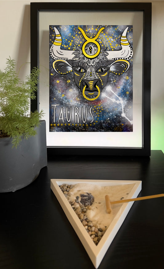 Taurus Zodiac Signs Astrology Colored Painting Prints with or without Frame