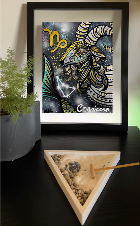 Capricorn Zodiac Sign Astrology Colored Painting Prints with or without Frame