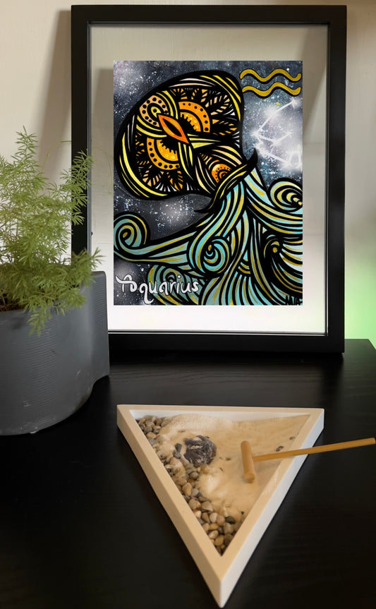 Aquarius Zodiac Sign Astrology Colored Painting Prints with or without Frame