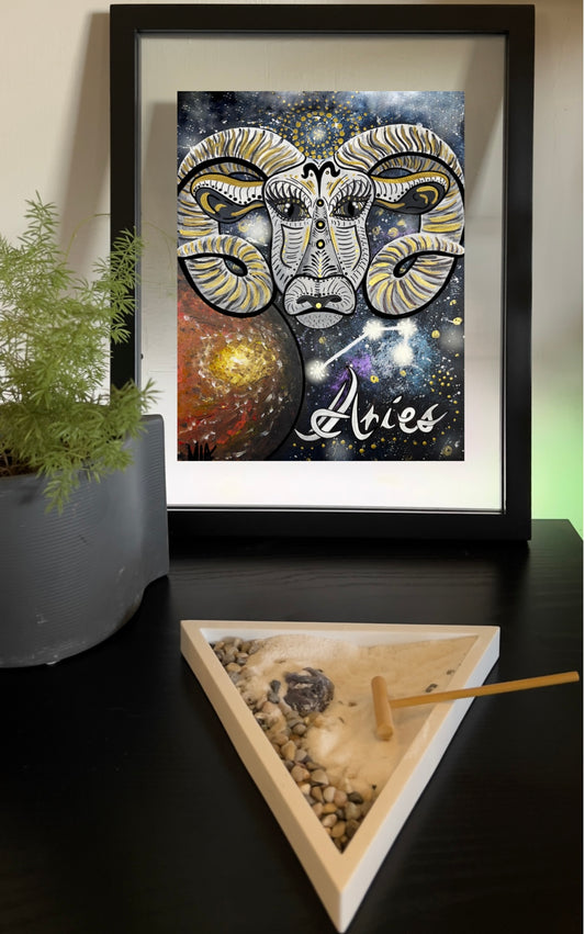 Aries Zodiac Sign Astrology Colored Painting Prints with or without Frame