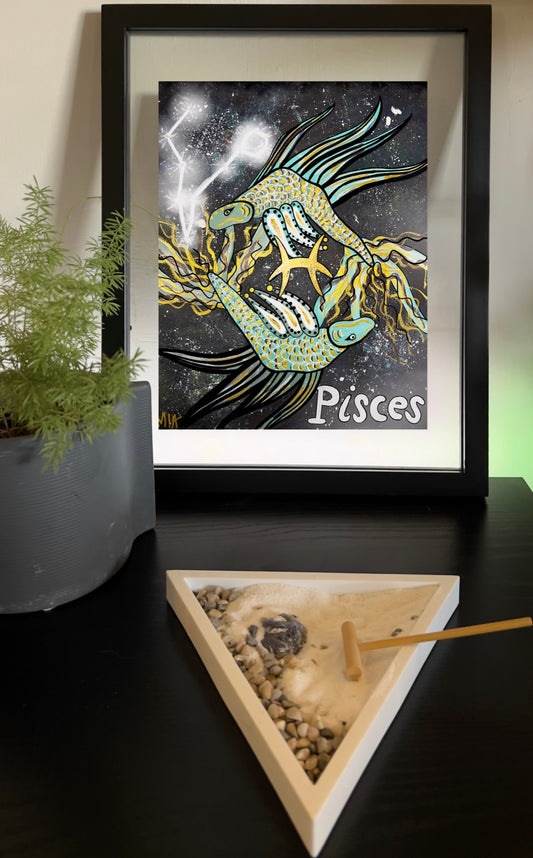 Pisces Zodiac Signs Astrology Colored Painting Prints with or without Frame